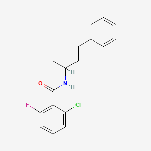 2-Chloro-6-fluoro-N-(4-phenylbutan-2-yl)benzamide is an organic compound that belongs to the class of benzamides. This compound is characterized by the presence of a chloro and fluoro substituent on the benzene ring, along with a phenylbutan-2-yl group attached to the nitrogen atom of the amide functional group. Benzamides are known for their diverse applications in medicinal chemistry and material science.
