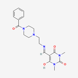CN1C(=C(C(=O)N(C1=O)C)C=NCCN2CCN(CC2)C(=O)C3=CC=CC=C3)O | |