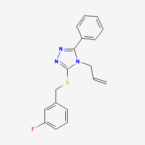 The synthesis of 4-allyl-3-[(3-fluorobenzyl)sulfanyl]-5-phenyl-4H-1,2,4-triazole typically involves the reaction of appropriate starting materials under controlled conditions. One common method includes the reaction of 3-fluorobenzyl chloride with allyl thiol in the presence of a base to form the intermediate 3-fluorobenzyl allyl sulfide. This intermediate is then reacted with phenyl hydrazine and triethyl orthoformate to form the desired triazole compound .