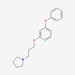 The synthesis of 1-[3-(3-phenoxyphenoxy)propyl]pyrrolidine typically involves the reaction of 3-(3-phenoxyphenoxy)propylamine with pyrrolidine under specific conditions. The reaction is usually carried out in the presence of a suitable solvent, such as dichloromethane or ethanol, and may require a catalyst to facilitate the reaction. The reaction conditions, including temperature and time, are optimized to achieve the highest yield of the desired product.
