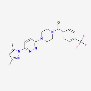 The synthesis of 3-(3,5-dimethyl-1H-pyrazol-1-yl)-6-{4-[4-(trifluoromethyl)benzoyl]piperazin-1-yl}pyridazine typically involves multiple steps, starting with the preparation of the pyrazole and pyridazine rings. The pyrazole ring can be synthesized by reacting 3,5-dimethyl-1H-pyrazole with appropriate reagents under controlled conditions . The pyridazine ring is then formed through a series of cyclization reactions.