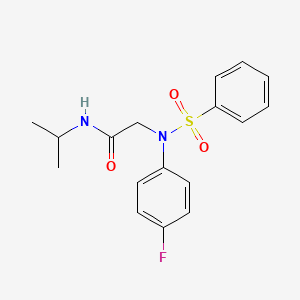 N~2~-(Benzenesulfonyl)-N~2~-(4-fluorophenyl)-N-propan-2-ylglycinamide is a complex organic compound that has garnered interest in various scientific fields due to its unique structural properties and potential applications. This compound features a benzenesulfonyl group, a 4-fluorophenyl group, and a propan-2-ylglycinamide moiety, making it a versatile molecule for research and industrial applications.