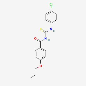 The synthesis of N-[(4-chlorophenyl)carbamothioyl]-4-propoxybenzamide typically involves the reaction of 4-chlorophenyl isothiocyanate with 4-propoxybenzamide under controlled conditions. The reaction is usually carried out in an organic solvent such as dichloromethane or tetrahydrofuran, with the presence of a base like triethylamine to facilitate the reaction. The mixture is stirred at room temperature for several hours until the reaction is complete. The product is then purified using techniques such as recrystallization or column chromatography .