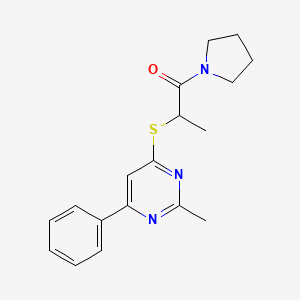 InChI=1S/C18H21N3OS/c1-13(18(22)21-10-6-7-11-21)23-17-12-16(19-14(2)20-17)15-8-4-3-5-9-15/h3-5,8-9,12-13H,6-7,10-11H2,1-2H3 | |