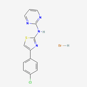 4-(4-chlorophenyl)-N-pyrimidin-2-yl-1,3-thiazol-2-amine;hydrobromide is a complex organic compound that belongs to the class of heterocyclic compounds. It is characterized by the presence of a thiazole ring, a pyrimidine ring, and a chlorophenyl group. This compound is of significant interest in medicinal chemistry due to its potential biological activities and applications in various scientific research fields.