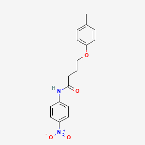The synthesis of 4-(4-methylphenoxy)-N-(4-nitrophenyl)butanamide typically involves the reaction of 4-methylphenol with 4-nitroaniline in the presence of a suitable coupling agent. The reaction conditions often include the use of solvents such as dichloromethane or tetrahydrofuran, and catalysts like N,N’-dicyclohexylcarbodiimide (DCC) to facilitate the formation of the amide bond.