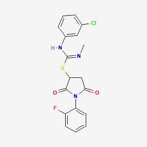 [1-(2-fluorophenyl)-2,5-dioxopyrrolidin-3-yl] N-(3-chlorophenyl)-N’-methylcarbamimidothioate: is a complex organic compound that has garnered interest in various scientific fields due to its unique chemical structure and potential applications