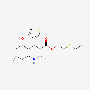 2-(Ethylsulfanyl)ethyl 2,7,7-trimethyl-5-oxo-4-(thiophen-3-yl)-1,4,5,6,7,8-hexahydroquinoline-3-carboxylate is unique due to the presence of the ethylsulfanyl group, which imparts distinct chemical reactivity and biological activity. This differentiates it from other similar compounds that may lack this functional group or have different substituents on the quinoline or thiophene rings.