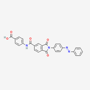 The compound 4-{[(1,3-dioxo-2-{4-[(E)-phenyldiazenyl]phenyl}-2,3-dihydro-1H-isoindol-5-yl)carbonyl]amino}benzoic acid is a complex organic molecule that features a combination of aromatic and heterocyclic structures. This compound is notable for its potential applications in various fields, including medicinal chemistry and materials science. The presence of the phenyldiazenyl group and the isoindole moiety makes it an interesting subject for research due to its unique chemical properties and potential biological activities.