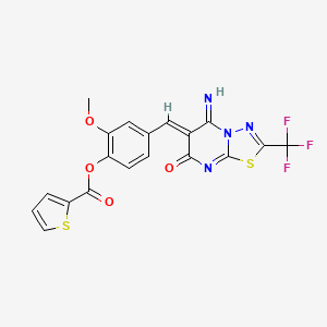 4-{[(6Z)-5-Imino-7-oxo-2-(trifluoromethyl)-5H,6H,7H-[1,3,4]thiadiazolo[3,2-A]pyrimidin-6-ylidene]methyl}-2-methoxyphenyl thiophene-2-carboxylate