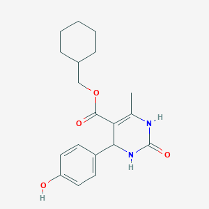 Cyclohexylmethyl 4-(4-hydroxyphenyl)-6-methyl-2-oxo-1,2,3,4-tetrahydropyrimidine-5-carboxylate is a complex organic compound that features a unique combination of functional groups. This compound is of interest due to its potential applications in various fields, including medicinal chemistry and materials science. The presence of both aromatic and aliphatic components, along with a tetrahydropyrimidine ring, makes it a versatile molecule for synthetic and analytical studies.