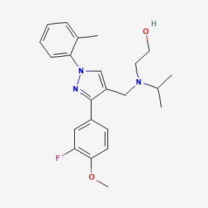 2-[[3-(3-Fluoro-4-methoxyphenyl)-1-(2-methylphenyl)pyrazol-4-yl]methyl-propan-2-ylamino]ethanol is unique due to its specific combination of functional groups and the presence of both fluoro and methoxy substituents on the phenyl ring, which confer distinct chemical and biological properties.