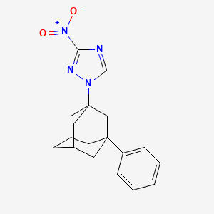 3-nitro-1-(3-phenyl-1-adamantyl)-1,2,4-triazole is a synthetic organic compound that belongs to the class of triazoles. Triazoles are five-membered heterocyclic compounds containing three nitrogen atoms. This particular compound is characterized by the presence of a nitro group, a phenyl group, and an adamantyl group attached to the triazole ring. The unique structure of this compound makes it of interest in various fields of scientific research.