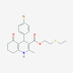 The synthesis of 2-(Ethylsulfanyl)ethyl 4-(4-bromophenyl)-2-methyl-5-oxo-1,4,5,6,7,8-hexahydroquinoline-3-carboxylate typically involves multi-step organic reactions. One common method includes the condensation of 4-(4-bromophenyl)-2-methyl-5-oxo-1,4,5,6,7,8-hexahydroquinoline-3-carboxylate with 2-(ethylsulfanyl)ethanol under acidic conditions. The reaction is usually carried out in the presence of a catalyst such as p-toluenesulfonic acid and requires refluxing the mixture for several hours.