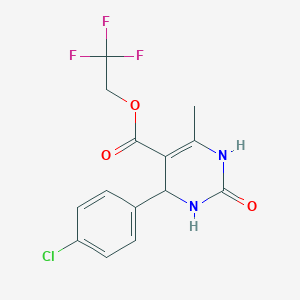 The mechanism of action of 2,2,2-Trifluoroethyl 4-(4-chlorophenyl)-6-methyl-2-oxo-1,2,3,4-tetrahydropyrimidine-5-carboxylate involves its interaction with specific molecular targets. These targets may include enzymes, receptors, or other proteins. The trifluoroethyl and chlorophenyl groups contribute to the compound’s binding affinity and specificity, while the tetrahydropyrimidine ring plays a role in its overall stability and reactivity.