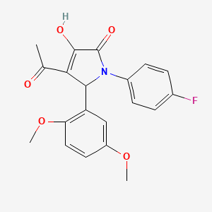 4-Acetyl-5-(2,5-dimethoxyphenyl)-1-(4-fluorophenyl)-3-hydroxy-2,5-dihydro-1H-pyrrol-2-one is a complex organic compound that belongs to the class of pyrrolones This compound is characterized by its unique structure, which includes acetyl, dimethoxyphenyl, fluorophenyl, and hydroxy groups