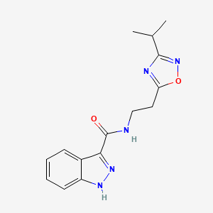 N-[2-(3-propan-2-yl-1,2,4-oxadiazol-5-yl)ethyl]-1H-indazole-3-carboxamide is a complex organic compound that features both an indazole and an oxadiazole ring. These heterocyclic structures are known for their significant roles in medicinal chemistry due to their diverse biological activities.