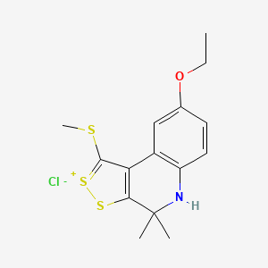 8-ethoxy-4,4-dimethyl-1-methylsulfanyl-5H-dithiolo[3,4-c]quinolin-2-ium chloride is a complex organic compound known for its unique structural properties and potential applications in various scientific fields. This compound features a quinoline core with multiple substituents, including ethoxy, dimethyl, and methylsulfanyl groups, which contribute to its distinctive chemical behavior.