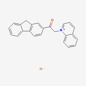 The synthesis of 1-(9H-fluoren-2-yl)-2-quinolin-1-ium-1-ylethanone;bromide typically involves multi-step organic reactions. One common method starts with the preparation of 9H-fluoren-2-yl derivatives, which can be synthesized through air oxidation of 9H-fluorenes in the presence of potassium hydroxide (KOH) in tetrahydrofuran (THF) . The quinolinium moiety can be introduced via a nucleophilic substitution reaction, where a quinoline derivative reacts with an appropriate electrophile.