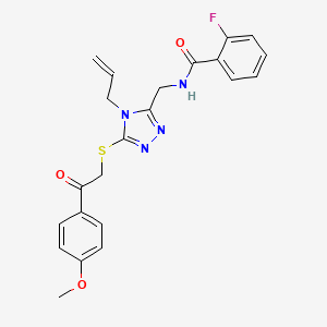 2-fluoro-N-{[5-{[2-(4-methoxyphenyl)-2-oxoethyl]sulfanyl}-4-(prop-2-en-1-yl)-4H-1,2,4-triazol-3-yl]methyl}benzamide is a complex organic compound that has garnered interest in various scientific fields due to its unique chemical structure and potential applications. This compound features a combination of fluorine, methoxyphenyl, and triazole groups, which contribute to its distinctive properties and reactivity.