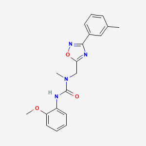 The synthesis of 1-(2-METHOXYPHENYL)-3-METHYL-3-{[3-(3-METHYLPHENYL)-1,2,4-OXADIAZOL-5-YL]METHYL}UREA typically involves multiple steps. One common method includes the reaction of 2-methoxyphenyl isocyanate with an appropriate amine to form the urea linkage . The oxadiazole ring can be introduced through a cyclization reaction involving hydrazides and carboxylic acids .