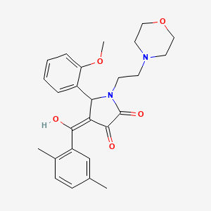 The synthesis of (4E)-4-[(2,5-dimethylphenyl)-hydroxymethylidene]-5-(2-methoxyphenyl)-1-(2-morpholin-4-ylethyl)pyrrolidine-2,3-dione typically involves multi-step organic reactions. The process begins with the preparation of the pyrrolidine-2,3-dione core, followed by the introduction of the 2-methoxyphenyl and 2,5-dimethylphenyl groups. The final step involves the addition of the morpholin-4-ylethyl group under controlled conditions to ensure the desired stereochemistry.