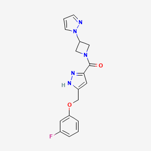 InChI=1S/C17H16FN5O2/c18-12-3-1-4-15(7-12)25-11-13-8-16(21-20-13)17(24)22-9-14(10-22)23-6-2-5-19-23/h1-8,14H,9-11H2,(H,20,21) | |
