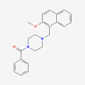The synthesis of {4-[(2-METHOXY-1-NAPHTHYL)METHYL]PIPERAZINO}(PHENYL)METHANONE typically involves multi-step organic reactions. One common approach is to start with the naphthyl derivative, which undergoes a series of reactions including alkylation, amination, and acylation to introduce the piperazine and phenyl groups. The reaction conditions often involve the use of catalysts, solvents, and controlled temperatures to ensure high yields and purity.