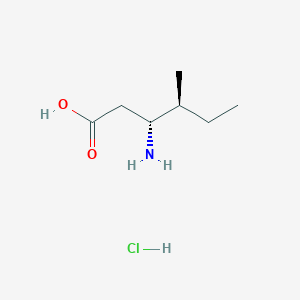 (3R,4S)-3-Amino-4-methylhexanoic acid hydrochloride, also known as 4-amino-4-methylhexanoic acid hydrochloride, is a chiral amino acid derivative with significant biological importance. This compound's unique stereochemistry imparts distinct biological and chemical properties, making it a subject of interest in various fields, including medicinal chemistry, biochemistry, and pharmacology.