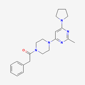 InChI=1S/C21H27N5O/c1-17-22-19(24-9-5-6-10-24)16-20(23-17)25-11-13-26(14-12-25)21(27)15-18-7-3-2-4-8-18/h2-4,7-8,16H,5-6,9-15H2,1H3 | |