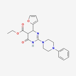 The synthesis of Ethyl 6-(furan-2-yl)-4-oxo-2-(4-phenylpiperazin-1-yl)-1,4,5,6-tetrahydropyrimidine-5-carboxylate typically involves multi-step organic reactions. One common synthetic route includes the following steps: