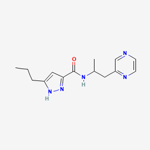 5-propyl-N-(1-pyrazin-2-ylpropan-2-yl)-1H-pyrazole-3-carboxamide is a synthetic organic compound that belongs to the class of pyrazole derivatives. These compounds are known for their diverse biological activities and are often used in medicinal chemistry for drug development.