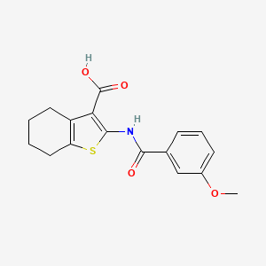 The mechanism of action of 2-(3-methoxybenzamido)-4,5,6,7-tetrahydro-1-benzothiophene-3-carboxylic acid involves its interaction with specific molecular targets. For instance, it may inhibit certain enzymes by binding to their active sites, thereby blocking their activity. The pathways involved can include signal transduction, metabolic processes, and cellular responses .