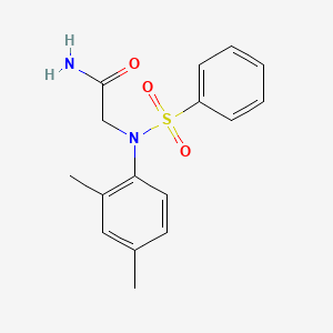 The synthesis of 2-[N-(2,4-dimethylphenyl)benzenesulfonamido]acetamide typically involves the reaction of 2,4-dimethylaniline with benzenesulfonyl chloride to form the corresponding sulfonamide. This intermediate is then reacted with chloroacetyl chloride to yield the final product. The reaction conditions often include the use of a base such as triethylamine to neutralize the hydrochloric acid formed during the reaction .