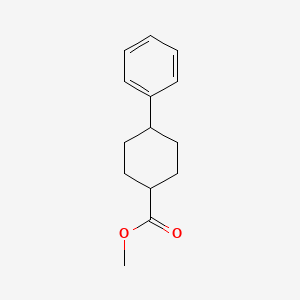 Methyl 4-phenylcyclohexanecarboxylate is a cyclohexane-based ester featuring a phenyl group at the 4-position of the cyclohexane ring and a methoxycarbonyl group (-COOCH₃) at the 1-position. The phenyl substituent introduces aromaticity, enhancing molecular rigidity and influencing reactivity compared to aliphatic analogs .