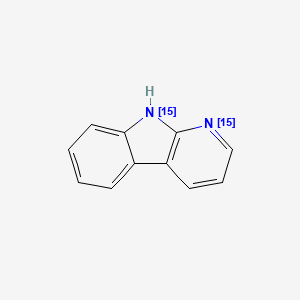 α-Carboline-15N2 is a stable, isotopically labeled version of α-carboline (9H-pyrido[2,3-b]indole), where both nitrogen atoms are replaced with the heavy isotope ¹⁵N. This labeling makes it an ideal internal standard for quantitative analysis by mass spectrometry (MS) and nuclear magnetic resonance (NMR) spectroscopy, as it can be distinguished from its naturally occurring counterpart.[1]