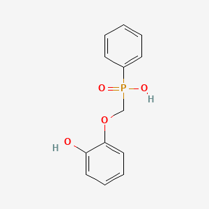The synthesis of (2-Hydroxyphenoxy)methyl-phenylphosphinic acid typically involves the reaction of phenylphosphinic acid with a suitable phenolic compound under controlled conditions. The reaction is often carried out in the presence of a catalyst and under specific temperature and pressure conditions to ensure high yield and purity of the product.