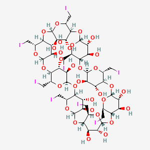 (1S,3S,5S,6S,8S,10S,11S,13S,15S,16S,18S,20S,21S,23S,25S,26S,28S,30S,31S,33S,35S,36S,38S,40S,41R,42R,43R,44R,45R,46R,47R,48R,49R,50R,51R,52R,53R,54R,55R,56R)-5,10,15,20,25,30,35,40-octakis(iodomethyl)-2,4,7,9,12,14,17,19,22,24,27,29,32,34,37,39-hexadecaoxanonacyclo[36.2.2.23,6.28,11.213,16.218,21.223,26.228,31.233,36]hexapentacontane-41,42,43,44,45,46,47,48,49,50,51,52,53,54,55,56-hexadecol | |