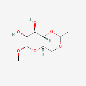 The mechanism by which methyl-4,6-O-ethylidene-alpha-D-glucopyranoside exerts its effects involves the formation of a stable cyclic acetal. This stability prevents the hydroxyl groups at positions 4 and 6 from participating in unwanted side reactions, thereby protecting these groups during subsequent chemical transformations . The molecular targets and pathways involved are primarily related to its role as a protecting group in synthetic chemistry.