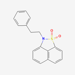 The synthesis of 2-(2-phenylethyl)-2H-naphtho[1,8-cd]isothiazole 1,1-dioxide typically involves the condensation of appropriate starting materials under controlled conditions. One common method involves the reaction of a naphthoquinone derivative with a phenylethylamine in the presence of a sulfur source, followed by oxidation to form the isothiazole ring . The reaction conditions often require the use of a catalyst and specific temperature and pressure settings to ensure the desired product yield.
