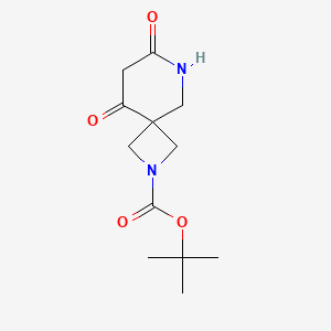 The mechanism of action of tert-butyl 7,9-dioxo-2,6-diazaspiro[3.5]nonane-2-carboxylate involves its interaction with specific molecular targets. The spirocyclic structure allows it to fit into enzyme active sites or receptor binding pockets, modulating their activity. The dioxo groups can participate in hydrogen bonding and electrostatic interactions, enhancing the compound’s binding affinity.