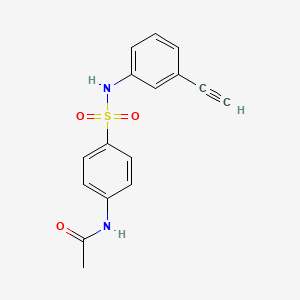The synthesis of N-[4-[(3-ethynylphenyl)sulfamoyl]phenyl]acetamide typically involves a multi-step process. One common method includes the reaction of 3-ethynylaniline with 4-nitrobenzenesulfonyl chloride to form an intermediate, which is then reduced to the corresponding sulfonamide. The final step involves the acetylation of the sulfonamide to yield this compound .