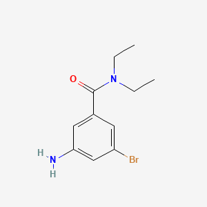The mechanism of action of 3-Amino-5-bromo-N,N-diethylbenzamide involves its interaction with specific molecular targets and pathways. The amino group can form hydrogen bonds with biological molecules, while the bromine atom can participate in halogen bonding. These interactions can modulate the activity of enzymes and receptors, leading to various biological effects. The compound’s diethylbenzamide moiety can also enhance its lipophilicity, facilitating its passage through cell membranes and increasing its bioavailability .