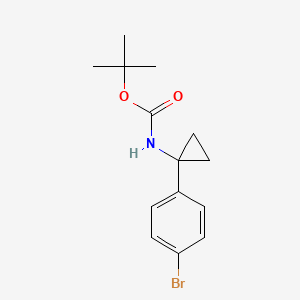 A common method for the synthesis of similar carbamates involves the reaction of a primary amine with di-tert-butyl dicarbonate (Boc)2O. The precursor, 1-(4-bromophenyl)cyclopropanamine, can be synthesized via a Kulinkovich reaction or other cyclopropanation methods followed by a Curtius or Hofmann rearrangement.