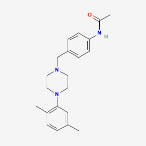 The synthesis of N-[4-[[4-(2,5-dimethylphenyl)piperazin-1-yl]methyl]phenyl]acetamide typically involves the reaction of 2,5-dimethylphenylpiperazine with a suitable acylating agent. The reaction is usually carried out in the presence of a base such as triethylamine or pyridine to neutralize the generated acid. The reaction conditions often include refluxing the mixture in an organic solvent like dichloromethane or toluene.