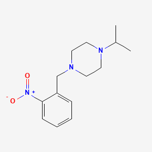 The synthesis of 1-[(2-NITROPHENYL)METHYL]-4-(PROPAN-2-YL)PIPERAZINE typically involves the reaction of 2-nitrobenzyl chloride with 4-(propan-2-yl)piperazine under basic conditions. The reaction is usually carried out in an organic solvent such as dichloromethane or toluene, with a base like sodium hydroxide or potassium carbonate to facilitate the nucleophilic substitution reaction. The reaction mixture is then stirred at room temperature or slightly elevated temperatures until the reaction is complete. The product is isolated by extraction and purified by recrystallization or column chromatography.