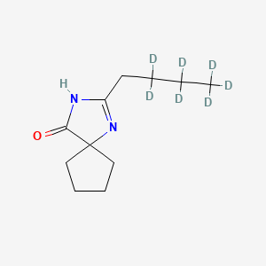 The mechanism of action of 2-n-Butyl-d7-1,3-diazaspiro[4.4]non-1-en-4-one involves its interaction with specific molecular targets and pathways. In the context of its use as an intermediate in drug synthesis, the compound’s effects are mediated through its conversion to active pharmaceutical ingredients. The molecular targets and pathways involved depend on the specific drug being synthesized. For example, in the case of Irbesartan, the compound ultimately acts on angiotensin II receptors to exert its antihypertensive effects .