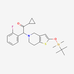 This compound is a structurally modified derivative of the thienopyridine class, characterized by a tert-butyldimethylsilyl (TBDMS) ether group at the 2-hydroxy position of the 6,7-dihydrothieno[3,2-c]pyridine core. Its IUPAC name reflects three key structural features: