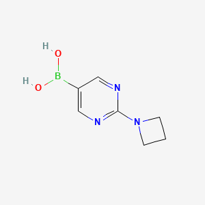 The mechanism of action of (2-(Azetidin-1-yl)pyrimidin-5-yl)boronic acid depends on its application. In Suzuki-Miyaura coupling, the boronic acid group undergoes transmetalation with a palladium catalyst, followed by reductive elimination to form the desired carbon-carbon bond . In biological applications, the compound may interact with specific molecular targets, such as enzymes or receptors, through hydrogen bonding or covalent interactions, leading to inhibition or modulation of their activity.