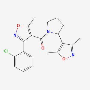 3-(2-Chlorophenyl)-4-[2-(3,5-dimethyl-1,2-oxazol-4-YL)pyrrolidine-1-carbonyl]-5-methyl-1,2-oxazole is a complex organic compound with potential applications in various fields such as chemistry, biology, and medicine. This compound is characterized by its unique structure, which includes a chlorophenyl group, a pyrrolidine ring, and two oxazole rings.